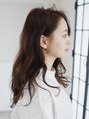 顎下まであるかきあげバングが、セクシーで柔らかな女性らしい印象。ウェーブは中間から毛先にかけて大き目のロッドでふんわりと。コテでまいたような形状になるデジタルパーマがおすすめ。