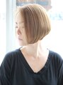 前下がりのベーシックショートボブスタイルです。ゴールデンポイントから、ぼんのくぼ、はちまで頭の骨格を考えライン設定をしてグラデーションをつけてます。計算されたカットで、らしさを引き出してます。瞳の色、肌の色を考えカラーの明度と彩度もチョイス