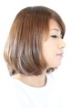 顎ラインボブベースにレイヤーをチョッときかせたスタイルです。前髪は流して目にかかるくらいで大人のセクシーさをだしています。毛先にワンカールパーマをかけカラーはグラデーションカラーで軽さ柔らかさを演出。遊び心満載の大人可愛いスタイルです。