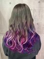 インナー部分をケアブリーチで脱色後、ブルー、パープル、ピンク、コーラルピンクでランダムにオンカラー☆町田/町田駅/JR町田駅