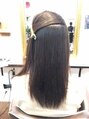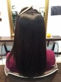 2ヶ月前に全体にブリーチをしているお客様です。優しい薬剤で髪への負担を抑えてキレイにクセを伸ばしました。