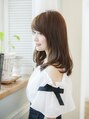 前上がりベースのナチュラルなセミロングヘアにオレンジ系のカラーを入れることで大人の抜け感をプラスしています♪重たさを残したワンカールだけでも可愛い、清楚なロングスタイルです。