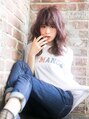パールパープルカラーで個性的でおしゃれ感倍増♪高めの位置からたっぷり入れたレイヤーと透け感のある前髪カットで今までにない新しい軽さをメイク♪崩しの効いた無造作なウェーブがキメ過ぎないおしゃれ感と色気を演出★