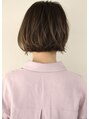 襟足すっきりとしたボブスタイルです。コロンとしたシルエットが女性らしい大人可愛いスタイルです。襟足ギリギリでカットしているスタイルなので首がスッと綺麗に見えます。毛先の方にくにゃっとゆるめにパーマがかかっています。
