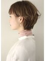 前髪とサイドをつなげてカットする事で両サイドに長さが残り小顔に見せる効果があります。表面の長さを長めに残してショートスタイルでも女性らしさのあるスタイルに仕上げています。毛先にニュアンスでパーマのかかっているスタイルです。
