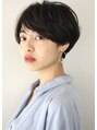 襟足すっきりとしたマッシュショートスタイルです。表面に長さを残す事で短くても女性らしい印象にしています。毛先にニュアンスでパーマのかかっているスタイルなのでスタイリングが苦手という方にもオススメのスタイルです。