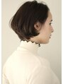 前下がりのショートボブスタイルです。顔がシャープに見えるようにひし形をイメージしてカットしています。女性らしい印象に見えるように毛先の方にパーマをかけたスタイルです。スタイリングが苦手という方にもオススメのスタイルです。