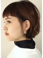 襟足ギリギリでカットしたコロンとした女性らしいシルエットのボブスタイルです。ゆるっと毛先よりにパーマのかかっているスタイルなのでスタイリングが苦手という方にもオススメのスタイルです。