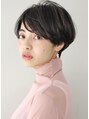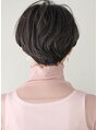 ふんわりと見せるように前髪を深めに作っています。立体感のある仕上がりになり、小顔の効果もあります。毛先の方にニュアンスでパーマをかけたショートスタイルなのでボーイッシュになり過ぎない、大人可愛いスタイルです。