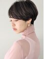 ふんわりと見えるように前髪を深めに作っています。立体感のある仕上がりになり、小顔に見せる効果もあります。毛先の方にニュアンスでパーマをかけたショートスタイルなのでボーイッシュになり過ぎない、大人可愛いスタイルです。