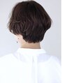 襟足をすっきりとさせ、表面の長さを残しふんわりと丸みのあるシルエットのマッシュショートスタイルです。毛先の方にゆるめのパーマのかかっているスタイルです。スタイリングが苦手という方にもオススメのスタイルです。