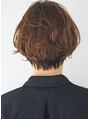 フラットめの少し前下がりのショートボブです。少し前下がりにする事で顔をシャープに見せる効果があります。耳掛けして2wayでお楽しみ頂ける飽きないスタイルになっています。