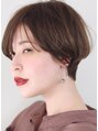 コロンと丸みの可愛いシルエットのマッシュショートヘアです。襟足はすっきりとしていて、表面は長さがあるので短くても女性らしさのある印象になります*毛先の方を中心にパーマのかかったスタイルなのでスタイリングが苦手な方にもオススメのスタイルです*