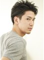 黒髪をいかし外国人っぽい質感を作ったスタイルです。浅め2ブロックのグラデーションの刈り上げがポイントなのでルーズに見せる為刈り上げも軽くしルーズにします。質感作りが大切なのでドライカットのスライドカットを入れて柔らかい印象にしていきます。