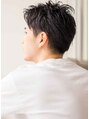 浅め2ブロックのグラデーションの刈り上げがポイントです。ルーズに見せる為刈り上げも軽くしルーズにします。質感作りが大切なので、スライドカットを入れます。根元からハーフカールのパーマです。あえて巻かない部分を作って自然なクセ毛っぽくみせます。