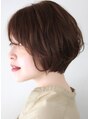 ふんわりと柔らかい印象のショートスタイルです。ひし形をイメージすることで頭の形をよく見せ両サイドの長さを残す事で小顔に見せています。毛先を中心にパーマのかかっているスタイルなのでスタイリングが苦手という方にもオススメのスタイルです。