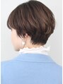コロンと丸みの可愛いシルエットのマッシュショートヘアです。襟足はすっきりとしていて、表面は長さがあるので短くても女性らしさのある印象になります*毛先の方を中心にパーマのかかったスタイルなのでスタイリングが苦手な方にもオススメのスタイルです*