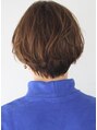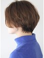 フラットめの少し前下がりのショートボブです。少し前下がりにする事で顔をシャープに見せる効果があります。耳掛けして2wayでお楽しみ頂ける飽きないスタイルになっています。