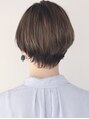 フラットめの少し前下がりのショートボブです。少し前下がりにする事で顔をシャープに見せる効果があります。耳掛けして2wayでお楽しみ頂ける飽きないスタイルになっています。