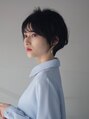 ショートローレイヤースタイル。毛先を遊ばせて浮遊感のあるスタイルに。トップのボリュームもカバーできるオトナ女性にオススメのショートヘア。