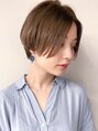 フラットめの少し前下がりのショートボブです。少し前下がりにする事で顔をシャープに見せる効果があります。耳掛けして2wayでお楽しみ頂ける飽きないスタイルになっています。