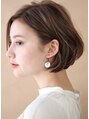 短くても全体的に丸みがある、ボーイッシュにならないように表面の長さを残したショートボブスタイルです。細かく全体的にハイライトを入れたカラーリングです*凹凸感が出て動きのある仕上がりになります。白髪が気になる方にもオススメのカラーです*