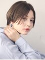 フラットめの少し前下がりのショートボブです。少し前下がりにする事で顔をシャープに見せる効果があります。耳掛けして2wayでお楽しみ頂ける飽きないスタイルになっています。