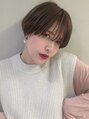 耳が見えるくらいのコンパクトなショートスタイルです。耳元のオシャレの幅が広がります。スマートなショートスタイルの中にふんわりと柔らかさのある印象になるように毛先の方にニュアンスでパーマのかかっているスタイルです。