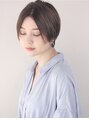 フラットめの少し前下がりのショートボブです。少し前下がりにする事で顔をシャープに見せる効果があります。耳掛けして2wayでお楽しみ頂ける飽きないスタイルになっています。