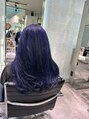 福岡 ブリーチ ネイビーブルー レイヤーカット コリアンブラック