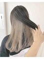 ホワイトインナーカラー。インナーを2回ブリーチしてるベースにさらにブリーチ。系3回で作るホワイトベージュのインナーカラー。コントラストを、出す為に表面は染めてません。