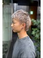 サイドを刈り上げて被せスッキリしたショートスタイルです。襟足は少し長めに残すのが今っぽいです。カラーはブリーチ2回のホワイトグレージュ。[福岡/天神/大名/美容室/メンズ/メンズカット/メンズショート/メンズハイトーン/メンズブリーチ/メンズウルフ]