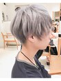 Wカラーでメンズでも透明感のあるおしゃれアッシュグレー ジュカラーに!!ハイトーンにすることによって束感が出や すく立体的なセットが可能に!!人気の清潔感のあるツーブロッ クショートスタイル☆