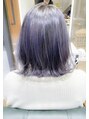 全頭ブリーチして嫌な赤味を消して人気のオリジナルネイビーグレージュカラーをのせます!赤味の全く無 いブリーチならではの透明感のあるグレーカラーを実現しま す!ブリーチの回数は髪質により個人差がありますのでご相 談くださいね!!