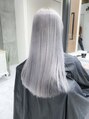 全頭ブリーチして嫌な赤味を消して人気のオリジナルアッシュグレージュカラーをのせます!赤味の全く無 いブリーチならではの透明感のあるグレーカラーを実現しま す!ブリーチの回数は髪質により個人差がありますのでご相 談くださいね!!