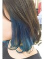 人気のインナーデザインカラーブルーカラー10代/20代 原宿個性派・存在感は保証します!!可愛すぎる人気の全頭ブリーチのアッシュグレージュカラーの内側にブルーのカラーバター!!巻き髪などにはぴったり!ブリーチの回数は髪質によりますので 一度ご相談