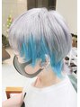 個性派・存在感は保証します!!可愛すぎる人気の全頭ブリーチのアッシュグレージュカラーの内側にブルーのカラーバター!!巻き髪などにはぴったり!ブリーチの回数は髪質によりますので 一度ご相談ください