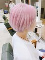 前髪薄めのハンサムショートで女性らしさとこなれ感を。メリハリのあるフォルムにする事で小顔に。頭の形を綺麗に見せれます。カラーは柔らかさをだすためブリーチデザインカラー で透明感カラーに!!