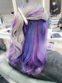 人気のアッシュグレージュカラーに内側にはインナーカラーバイオレット・外側にはピンクカラーバターをon!巻き髪 などにはぴったり一味違う個性派可愛いヘアカラー!!カラ ーバターは色持ちも良くトリートメントなのでNOダメージで す!
