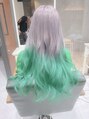 ホワイトシルバーに毛先グリーンカラー