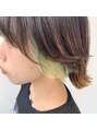 ベリーショートのカットに合わせてデザインしたインナーカラー(^ ^)☆今回はグリーンをのせてカジュアルストリートの演出☆カットとデザインカラーの組み合わせでオリジナルカラーを一緒に作りましょう^ - ^