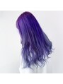 毛先に向かってブリーチ回数が多くなっており、それを活かしてバイオレットからブルーまでの色を塗り分けてやってあります^ - ^個性派にオススメ☆