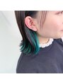 インナーカラーにターコイズブルーをのせてあります☆全体の明るさを暗くデザインする事できわ立ちます^ - ^外ハネも巻いても可愛いです☆