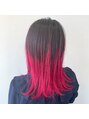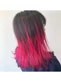 上と下がはっきりセパレートしないようにややバレイヤージュ風にスジ感を出したグラデーションカラー☆塩基性カラーで作るピンクはロック感を演出☆