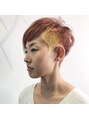 過去の履歴と合わせて2回ブリーチをしてから、刈り上げ部分をイエロー、根本から毛先に向かってオレンジからピンクのグラデーションにしてあります☆3色使った個性派カラー☆