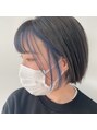 顔周りインナーカラー☆フェイスライン一線をサファイアブルーにして、全体はダークグレーに^^前髪のインナーカラーが可愛いです!