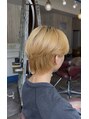 ワンブリーチ、ムラシャン仕上げのブランドヘア襟足を残したカットで、トレンド感を演出するスタイルです