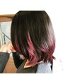 裾カラーはその名の通り裾にカラーリングします。ブリーチをしてからレッド系のカラーで染めました! さりげなくお洒落にしたい方にオススメです!