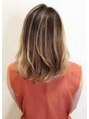 スモーキーベージュのバレイヤージュハイライト。柔らかさがあるので、ブロンドにしたいけど、少しナチュラル感が欲しい方には是非。バレイヤージュハイライトで立体感を出しつつ、地毛の暗めの髪をうまく利用したカラーです。根元が伸びても気になりません。