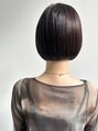 乾かすだけでまとまる、コンパクトにカットしたボブ、大人っぽく見える様にフルバングでカットするのがポイント。襟足はギリギリにカットして少しグラデーションで丸みをつけます。
